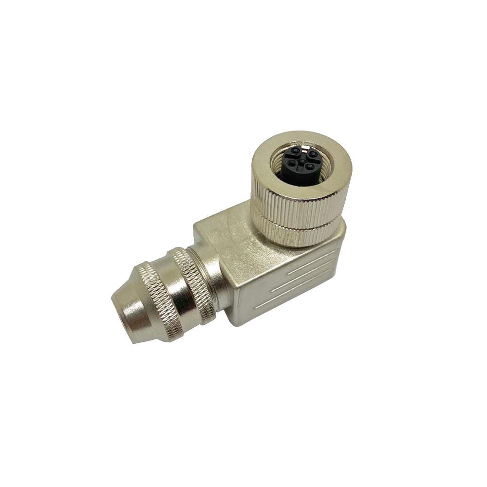 Metrik 12 ölçüde Ip65 sıvı koruma sınıfına sahip 4 Pinli 90 Derece Dişi Metal konnektördür.